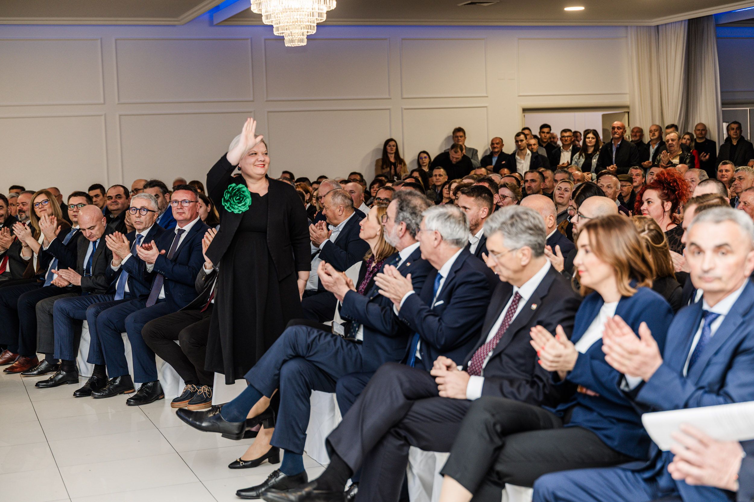 „U ukupnom rezultatu stranke osvojili smo više od 49 posto glasova kada se zbroje sve županije, gradovi i općine. To je politička slika Hrvatske na lokalnoj razini u kojoj postoji jedan veliki stup, koji ide gotovo do 50 posto i zove se HDZ, dok na drugoj strani tih preostalih 50 posto čine svi ostali politički akteri zajedno. Vi sa svojih 91 posto dajete ogroman doprinos rezultatu stranke. O tome, naravno, jako dobro znaju i u vodstvu stranke i u Hrvatskom saboru. Drago mi je da su ovdje praktički svi naši kandidati s liste, saborski zastupnici i zastupnice, i siguran sam da će oni biti ključna podrška za realizaciju brojnih projekata. Na panelu iza mojih leđa vrte se svi ovi projekti i doista, osim kazališta, ja ne znam Borislave i Antonija što je još ostalo na nama – no vjerujem da ćete smisliti nove projekte i nova ulaganja“, rekao je Plenković.